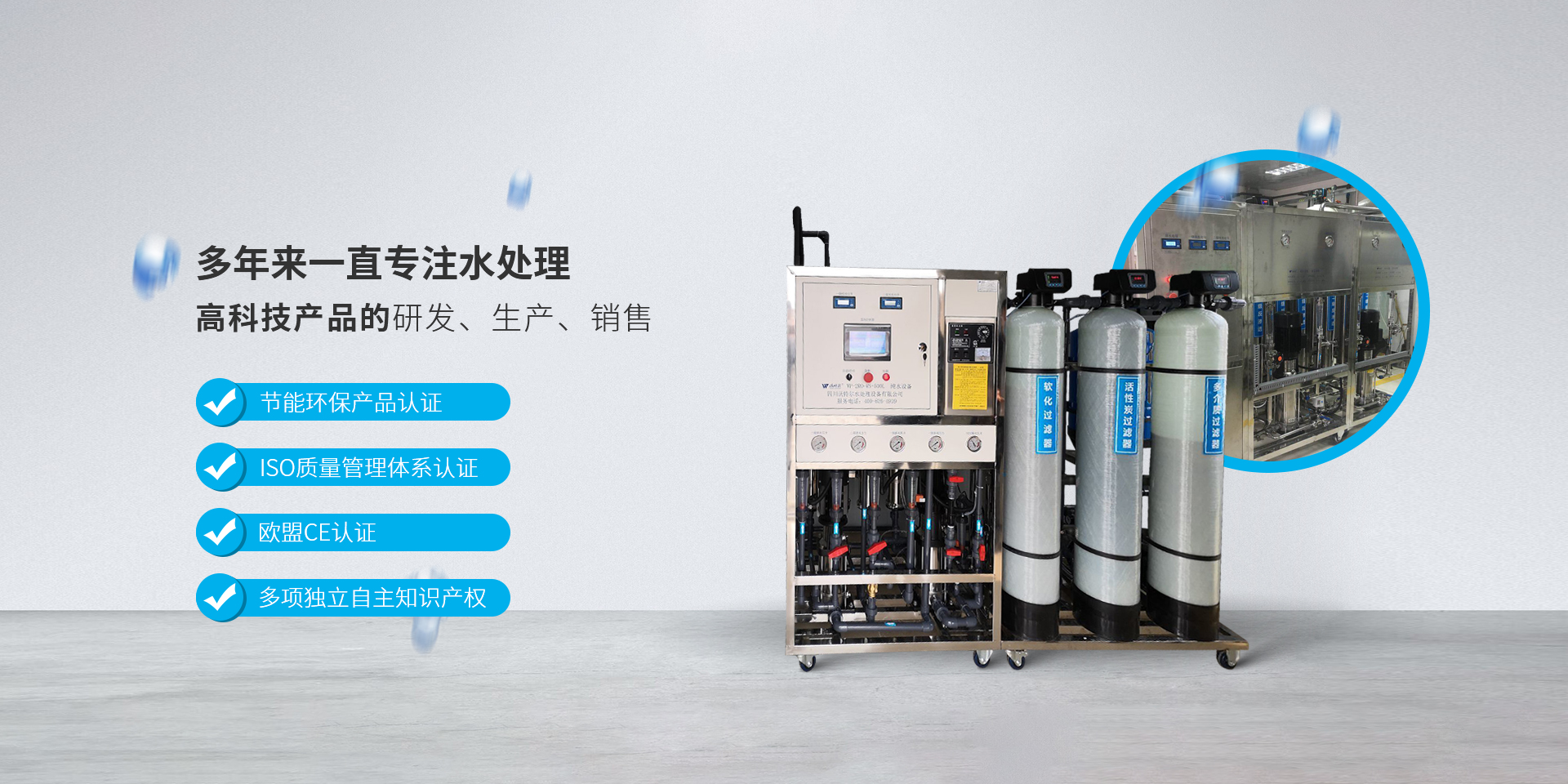 四川沃特爾水處理設(shè)備有限公司位于成都市溫江區(qū)成都海峽兩岸科技產(chǎn)業(yè)開(kāi)發(fā)園雙堰路1919號(hào)20號(hào)樓,公司成立于2005年6月16日,擁有3000多平米的現(xiàn)代化廠房,是一家集純水和超純水設(shè)備的研發(fā)設(shè)計(jì)、生產(chǎn)銷售、安裝服務(wù)、技術(shù)咨詢?yōu)橐惑w的綜合型企業(yè)。 公司主要生產(chǎn)和經(jīng)營(yíng)實(shí)驗(yàn)室超純水機(jī)系列、工業(yè)水處理設(shè)備等。